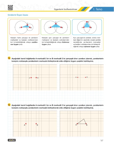kesişim noktasıyla çemberlerin merkezini birleştirerek elde ettiğiniz üçgen çeşidini belirleyiniz.
