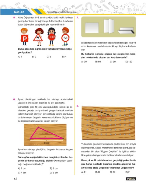 Buna göre kaç öğrencinin tuttuğu levhanın köşe- yor.