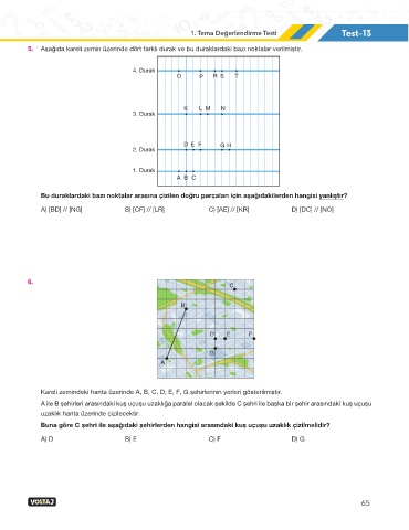 5. Aşağıda kareli zemin üzerinde dört farklı durak ve bu duraklardaki bazı noktalar verilmiştir.