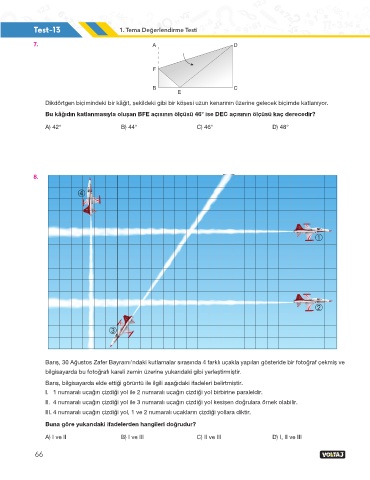 II. 4 numaralı uçağın çizdiği yol ile 3 numaralı uçağın çizdiği yol kesişen doğrulara örnek olabilir.