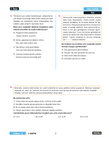 14. Tamamen aynı anlamı karşılamayan, aralarında kü- 15.
