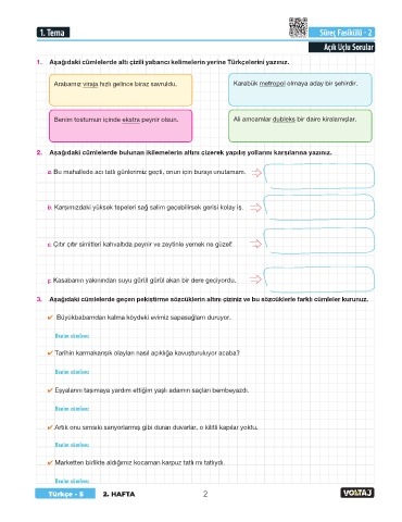 1. Aşağıdaki cümlelerde altı çizili yabancı kelimelerin yerine Türkçelerini yazınız.