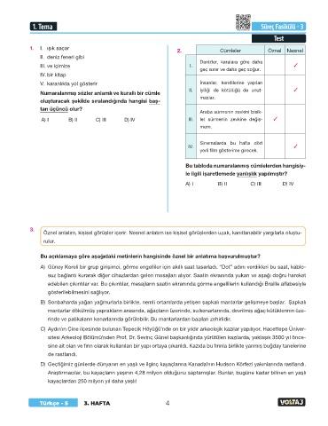 Bu tabloda numaralanmış cümlelerden hangisiy-