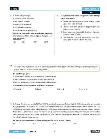8. I. kendini beğenmişlik 9. Aşağıdaki cümlelerden hangisinin anlam özelliği