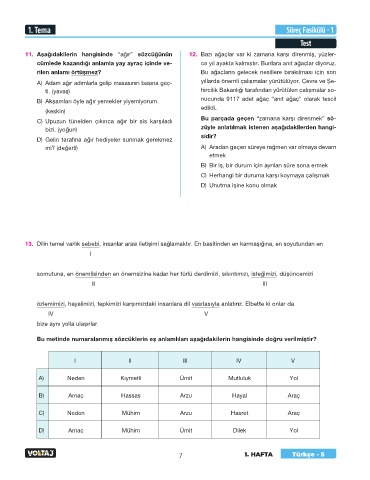 11. Aşağıdakilerin hangisinde “ağır” sözcüğünün 12. Bazı ağaçlar var ki zamana karşı direnmiş, yüzler-