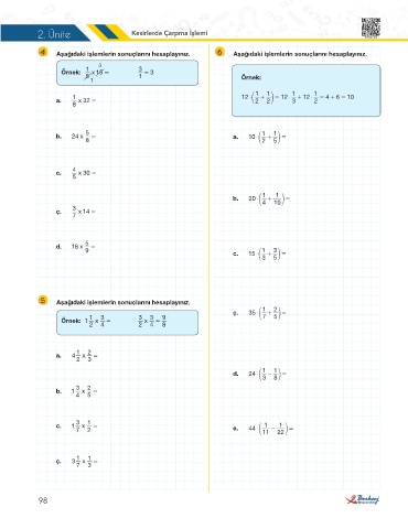2. Ünite Kesirlerde Çarpma İşlemi 6TKMAT-075