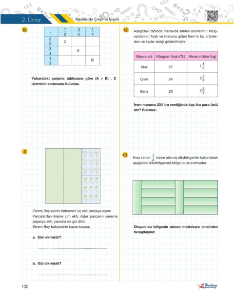 Ekrem Bey bahçesinin kaçta kaçına; Oluşan bu bölgenin alanını metrekare cinsinden