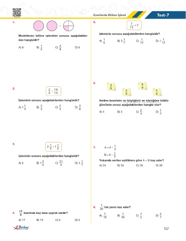 Kesirlerde Bölme İşlemi Test-7