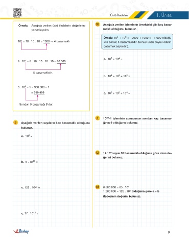 9 Aşağıda verilen sayıların kaç basamaklı olduğunu ğının 9 olduğunu bulunuz.