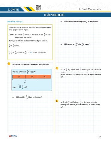 Bütünden Parçaya b. Tamamı 240 km olan yolun ’si kaç km’dir?