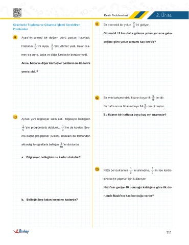 Kesir Problemleri 2. Ünite