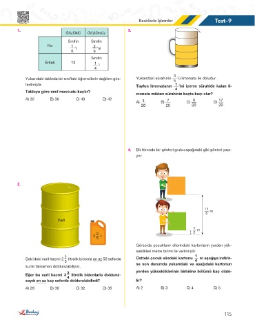 Yukarıdaki tabloda bir sınıftaki öğrencilerin dağılımı gös- Yukarıdaki sürahinin ’ü limonata ile doludur.