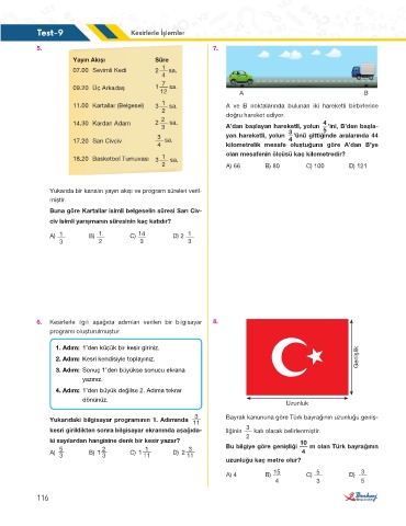 6. Kesirlerle ilgili aşağıda adımları verilen bir bilgisayar 8.