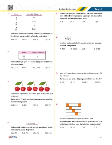 Yukarıda verilen kesirlerle ondalık gösterimler eş-