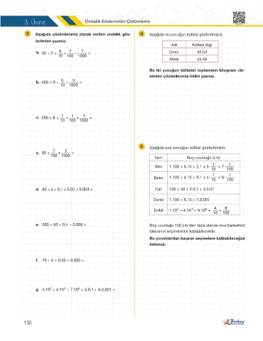 3 Aşağıda çözümlenmiş olarak verilen ondalık gös- 4 Aşağıda iki çocuğun kütlesi gösterilmiştir.