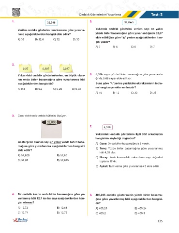 4. Bir ondalık kesrin onda birler basamağına göre yu- 8. 405,245 ondalık gösteriminin yüzde birler basama-