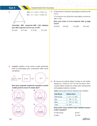 5. A |AB| = 3.1 + 2.0,1 + 7.0,01 cm 7. 5,3ab sayısının onda birler basamağına yuvarlanmış hâli