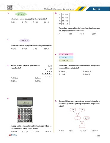 Ondalık Gösterimlerle Çarpma İşlemi Test-5