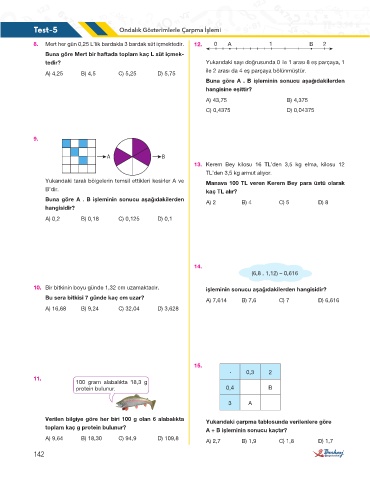 8. Mert her gün 0,25 L’lik bardakla 3 bardak süt içmektedir. 12. 0 A 1 B 2