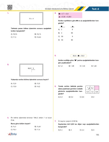 Ondalık Gösterimlerle Bölme İşlemi Test-6
