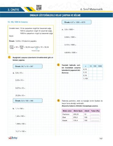 3. ÜNİTE 6TKMAT111 6. Sınıf Matematik