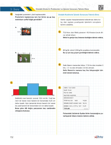 4 Aşağıdaki posterlerin yüzü kaplanacaktır. Ondalık Kesirlerde İşlemin Sonucunu Tahmin Etme
