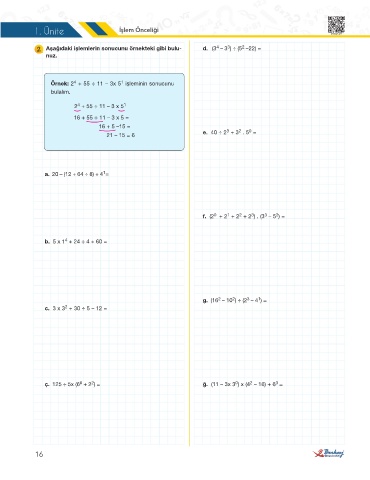 2 Aşağıdaki işlemlerin sonucunu örnekteki gibi bulu- d. (3 – 3 ) ÷ (5 –22) =