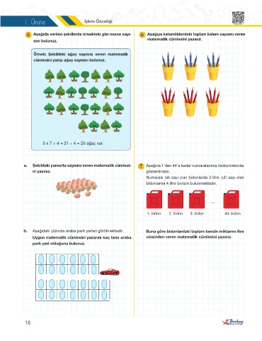 a. Şekildeki yumurta sayısını veren matematik cümlesi- 7 Aşağıda 1’den 44’e kadar numaralanmış özdeş bidonlar