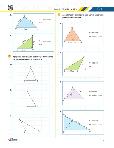 Ç = ............... Üçgenin Yüksekliği ve Alanı 5. Ünite