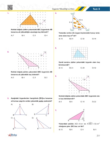 3. Aşağıdaki üçgenlerden hangisinde [BC]=a kenarına nı kaç birimkaredir?