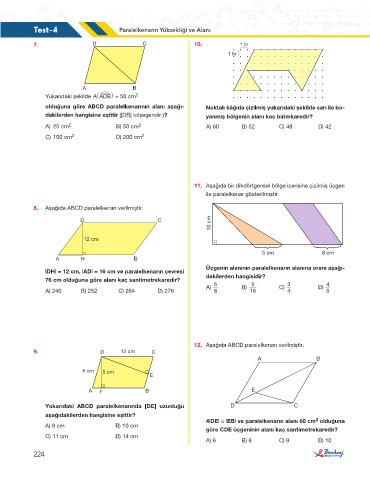 Test-4 Paralelkenarın Yüksekliği ve Alanı