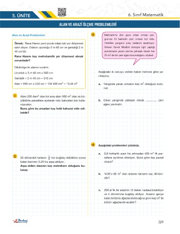Alan = 560 cm x 240 cm = 134 400 cm = 13,44 m 2 a. Yangında yanan ormanın kaç m olduğunu bulu-