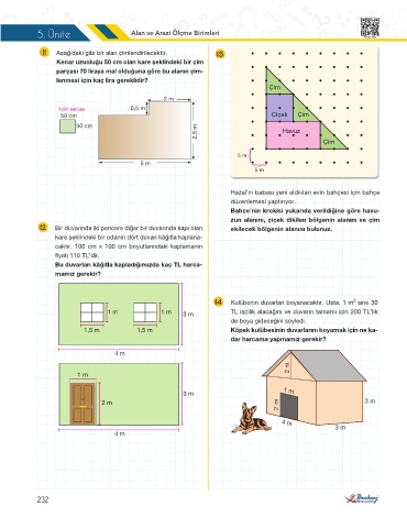 14 Kulübenin duvarlar› boyanacakt›r. Usta, 1 m sine 30