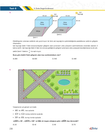 Işık kaynağı Şekil-1’deki konumundayken gölgenin alanı prizmanın arka yüzeyinin santimetrekare cinsinden alanının 3