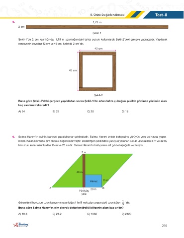 6. Selma Hanım’ın evinin bahçesi paralelkenar şeklindedir. Selma Hanım evinin bahçesine yürüyüş yolu ve havuz yaptır-