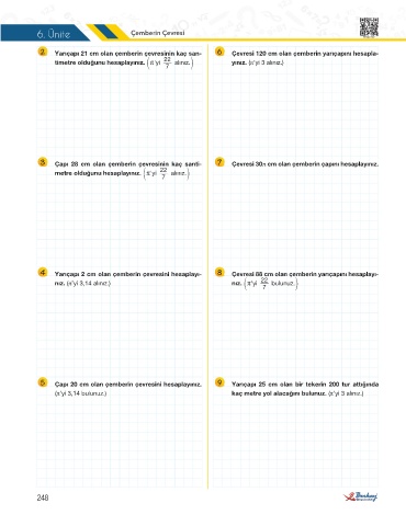 3 Çapı 28 cm olan çemberin çevresinin kaç santi- 7 Çevresi 30p cm olan çemberin çapını hesaplayınız.