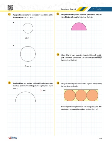 10 Aşağıdaki çemberlerin çevresinin kaç birim oldu- 12 Aşağıda verilen yarım dairenin çevresinin kaç bi-