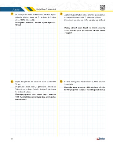 9 Ali kırtasiyeden defter ve kitap satın alacaktır. Eğer 5 11 Atatürk Müzesi Müdürü Dilek Han›m bir günün sonun-