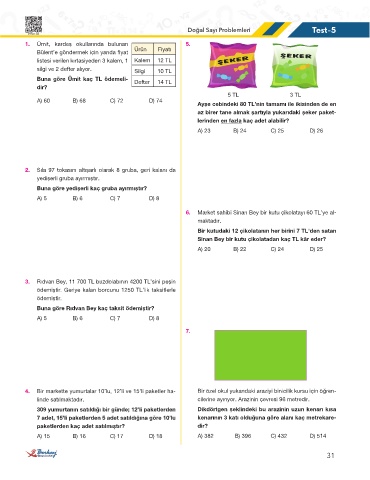 Doğal Sayı Problemleri Test-5