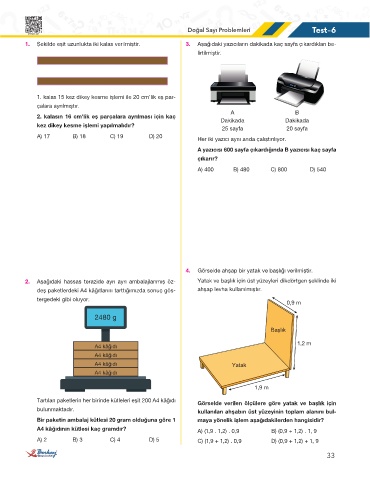 1. Şekilde eşit uzunlukta iki kalas verilmiştir. 3. Aşağıdaki yazıcıların dakikada kaç sayfa çıkardıkları be-