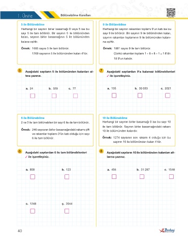 5 Aşağıdaki sayıların 5 ile bölümünden kalanları al- 7 Aşağıdaki sayılardan 9’a kalansız bölünebilenleri