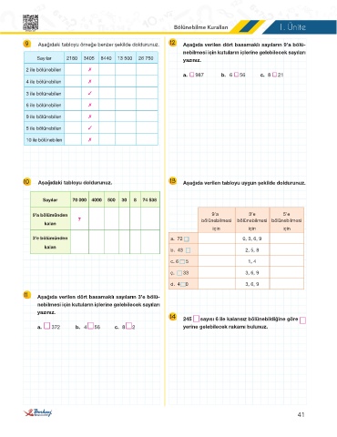 9 Aşağıdaki tabloyu örneğe benzer şekilde doldurunuz. 12 Aşağıda verilen dört basamaklı sayıların 9’a bölü-