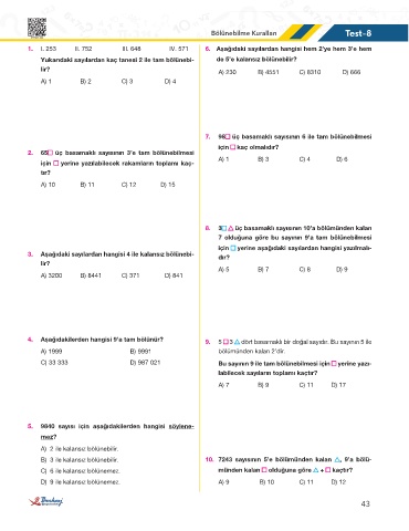 Bölünebilme Kuralları Test-8