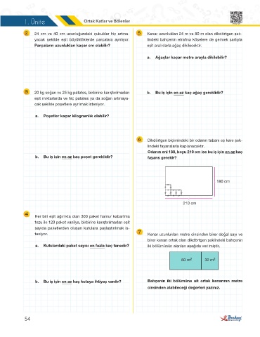2 24 cm ve 40 cm uzunluğundaki çubuklar hiç artma- 5 Kenar uzunlukları 24 m ve 80 m olan dikdörtgen şek-