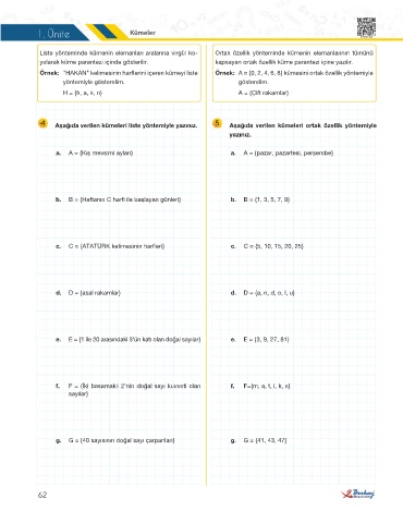 4 Aşağıda verilen kümeleri liste yöntemiyle yazınız. 5 Aşağıda verilen kümeleri ortak özellik yöntemiyle