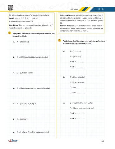 6 Aşağıdaki kümelerin eleman sayılarını sembol kul-