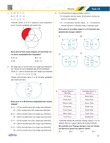 1. A = 2 . 5 . 7 . 11 3. A ve B kümeleri ile ilgili şu bilgiler veriliyor: