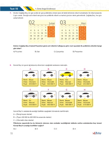 7. Doktor Çağdaş Bey, bir gün acilde bir gün poliklinikte olmak üzere iki farklı bölümde nöbet tutmaktadır. İki nöbet arasında