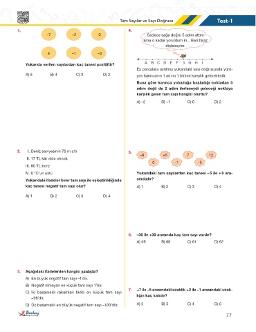 Tam Sayılar ve Sayı Doğrusu Test-1
