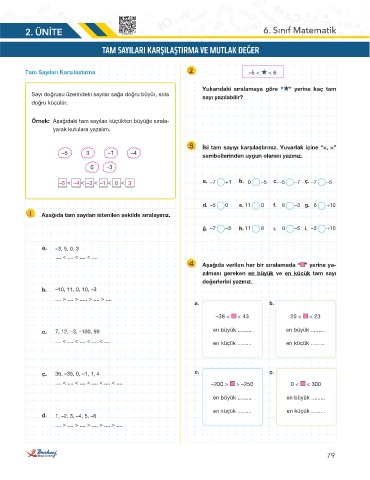 1 Aşağıda tam sayıları istenilen şekilde sıralayınız.